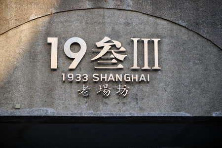 Shanghai 1933 historic building bronze plaque sign with Chinese characters and architectural details