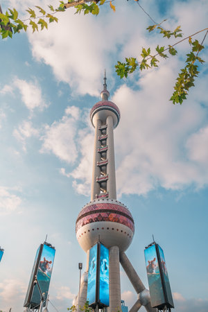 Cityscape view of Shanghai city. Skyscraper of the Oriental Pearl Tower, view from Lujiazui in Pudong of Shanghai, China. landmark and popular for tourism attractions. Travel and Vacation concept