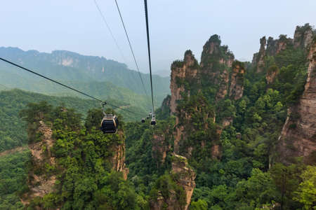 Cableway in Tianzi Avatar mountains nature park - Wulingyuan China - travel background