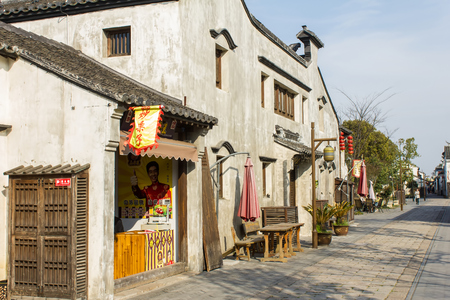 Nanxun, Zhejiang, China - 24 May 2019: Shops along main road in Nanxun Old Town