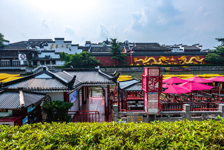 The architectural scenery of the Confucius Temple on the Qinhuai River in Nanjing City, Jiangsu Province.