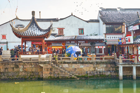 SUZHOU, CHINA- NOVEMBER 04: This is Shantang Street, a famous old street and popular tourist destination on November 04, 2019 in Suzhou