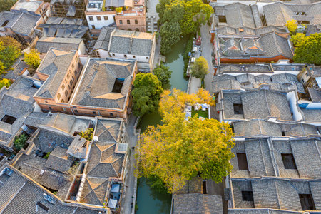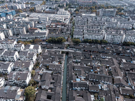 Aerial photography of ancient houses in Suzhou water town