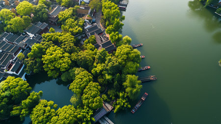 aerial view of West Lake Xihu District, Hangzhou, Zhejiang Province. Generative AI