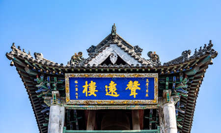 Street view in Old Pingyao town in Shanxi Province of China, with Chinese decoration, architecture and ornaments