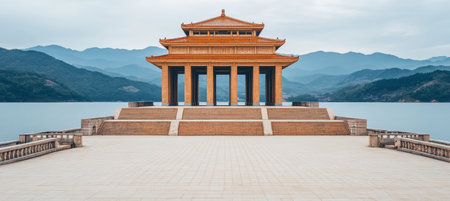 Stunning image of a traditional Asian building set against a soft background, showcasing intricate architectural details and a serene atmosphere.