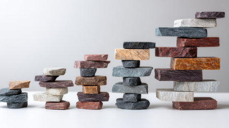 Stones arranged to represent different stages of strength and stability with layers showing growth and foundation over time.