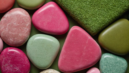 Abstract background of multi-colored stones lying tightly together. AI generated.