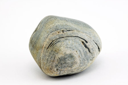 A simple, smooth gray pebblestone, standing alone on a white background, emphasizing its natural shape and texture