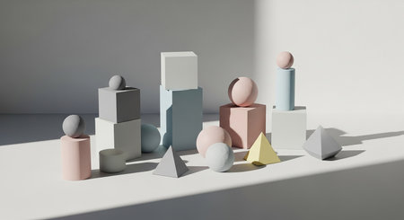A captivating arrangement of geometric shapes in soft pastel hues, perfect for contemporary design projects that emphasize minimalism and modern aesthetics.