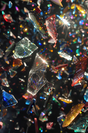 A colorful, sparkling, and glittery scene of broken glass