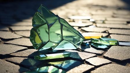 Beautiful arrangement of shattered glass fragments, showcasing vibrant colors and reflections. Ideal for abstract art themes or creative projects.