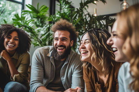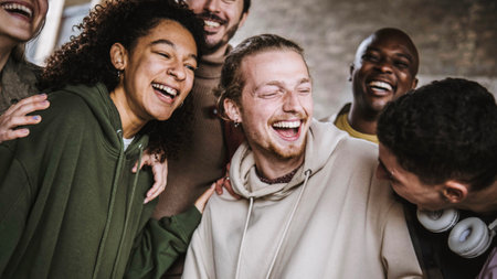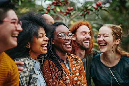 A Happy diverse group of friends laughing together, showcasing joy and connection