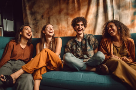 A group of young people laughing and laughing. AI generative image.