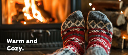 Cozy winter evening by fireplace with warm socks .Generative AI