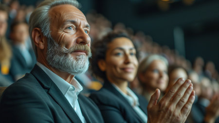 Audience leasting speaker at business conference. Generative AI.