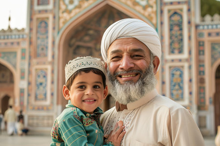 Generative AI Image of Arabian Man Wearing Shawl Smiling in Nature Landscape