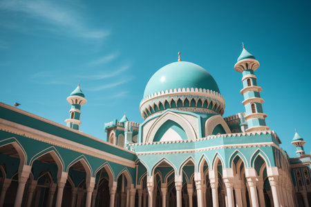 Captivating Perspectives: Exploring the Graceful Blue Islamic Architecture through a Low Angle Shot