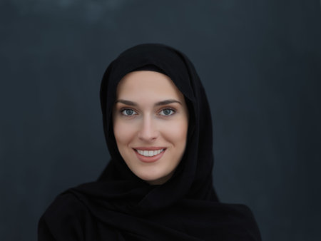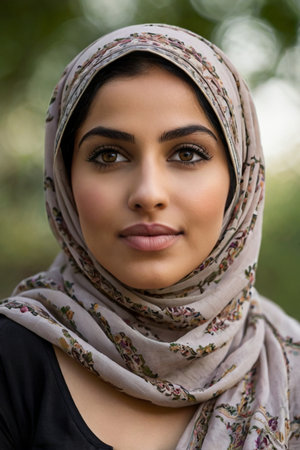 profile portrait close up of a beautiful middle eastern woman wearing a hijab