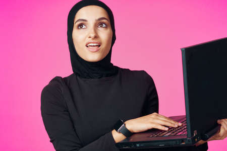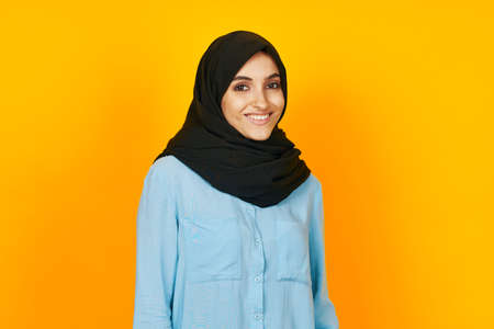 Muslim woman in hijab. Portrait of a young arab girl in traditional dress.