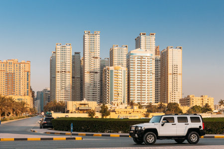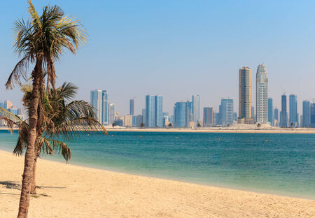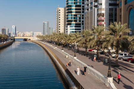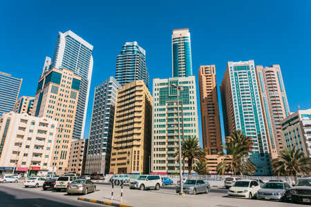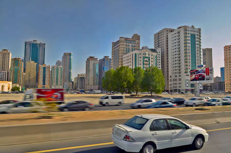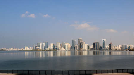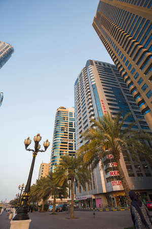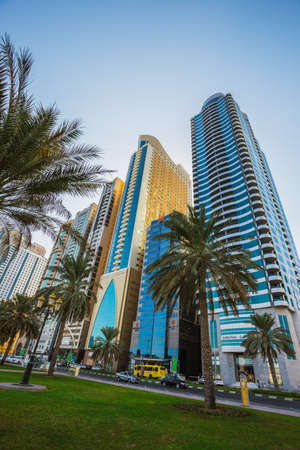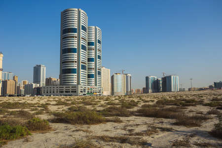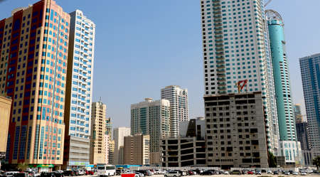 SHARJAH, UAE - NOVEMBER 01, 2013: General view of modern buildings in Sharjah. It is the most industrialized emirate in UAE.