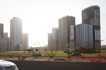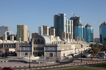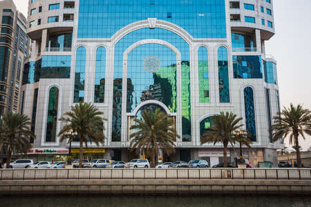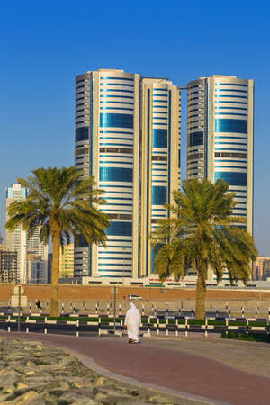 SHARJAH, UAE - OCTOBER 28, 2013: Modern buildings in Sharjah. It is the most industrialized emirate in UAE.