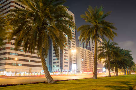 Sharjah, UAE February 24, 2020: at night city buildings and avenues of the city of Sharjah