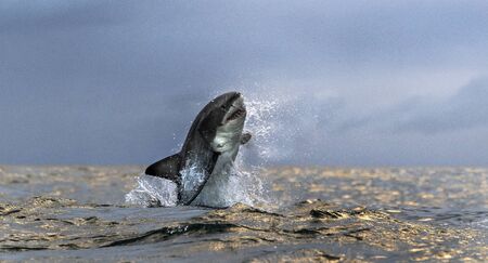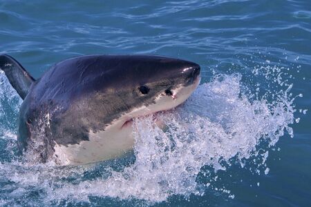 Breaching Great White Shark. Front view, Scientific name: Carcharodon carcharias. South Africa