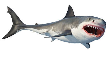 3D rendering of a great white shark isolated on white background