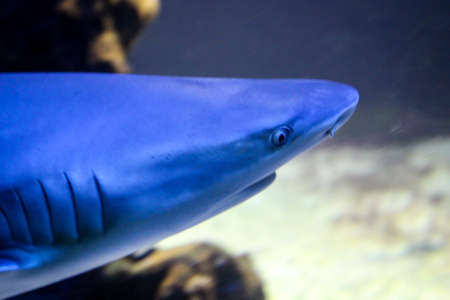 Shark in the aquarium against blue background