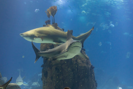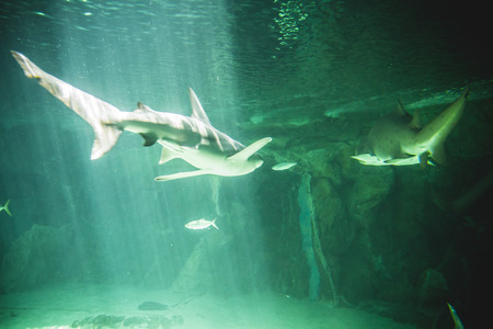 Shark Underwater Photo. Sharks in underwater with sunrays