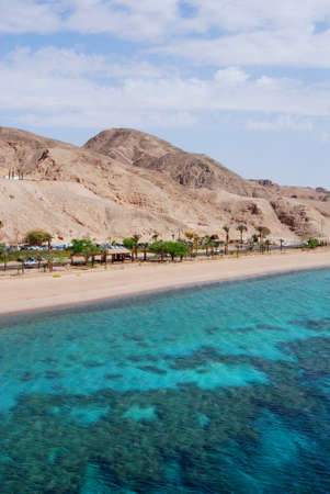 Coastline on Eilat in Israel, Red Sea with the mountains of the Negev desert