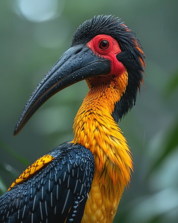 A large bird with a prominent beak and vibrant feathers stands confidently in its natural environment showing its majestic presence.