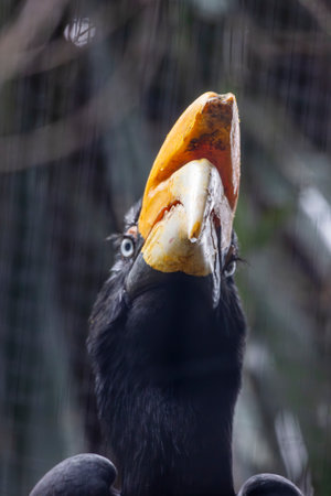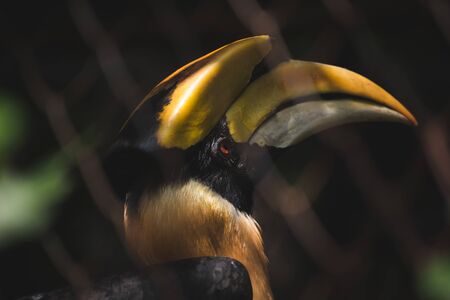 Close up view of a rhinoceros hornbill (Buceros rhinoceros) bird.
