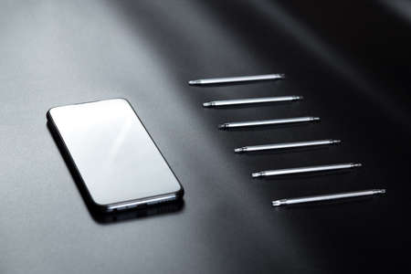 Little screwdrivers for elecrtonic repair on black background.