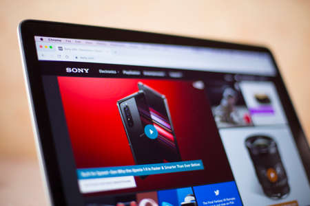 BELGRADE, SERBIA - MARCH 9, 2020: Sony web site on computer screen. Sony Corporation is a Japanese multinational conglomerate corporation founded at 1946.
