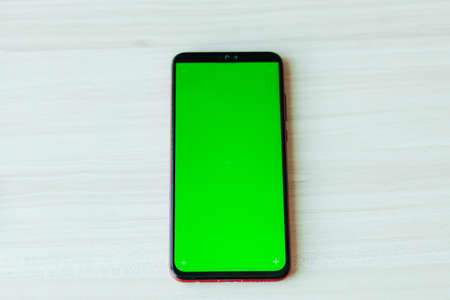 mobile phone with green screen. Mens hands