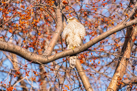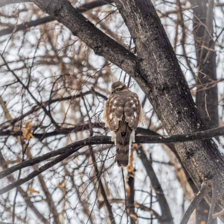 Juvenile Coopers Hawk (Accipiter cooperii) in a tree in winter
