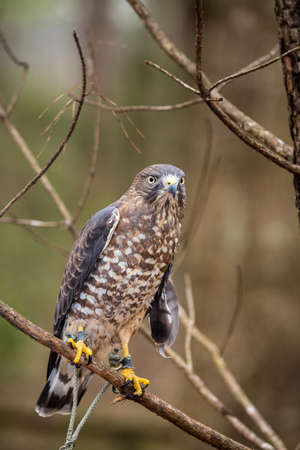 Red shouldered Hawk Buteo lineatus hunts for prey in the Corkscrew Swamp Sanctuary of Naples, Florida