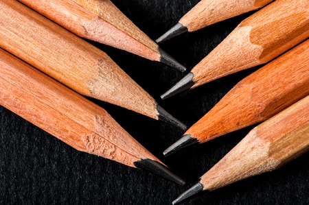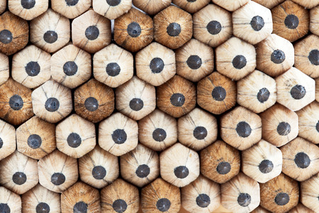 close up of wall of sharp ground grey graphite wooden texture pencil nibs