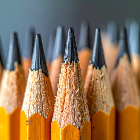 A collection of freshly sharpened pencils stands at attention, their graphite points ready to capture ideas, solve problems, or sketch a new vision.