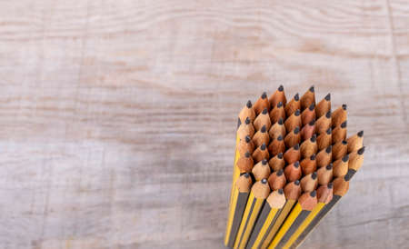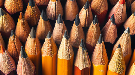 A collection of freshly sharpened pencils stands at attention, their graphite tips gleaming and ready.