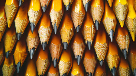 Vibrant yellow and black pencils with pointed tips line up neatly, ready to ignite creativity on blank canvases or detailed sketches.