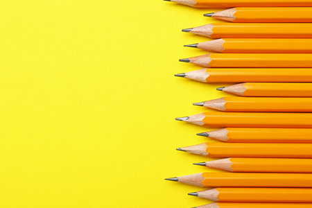 Aesthetic yellow background with yellow pencils. Copy space. Education projects template. Generative AI.