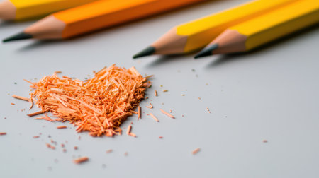Close-up of sharpened wooden pencils with shavings on a white surface