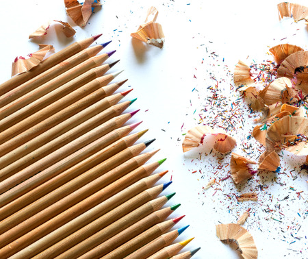 Colored Pencil Shavings In Action And Sharpening Pencils Viewed From Above