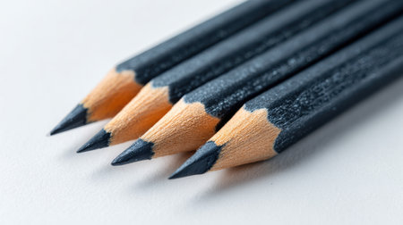 Four black pencils with a black tip and a yellow tip. The pencils are lined up next to each other