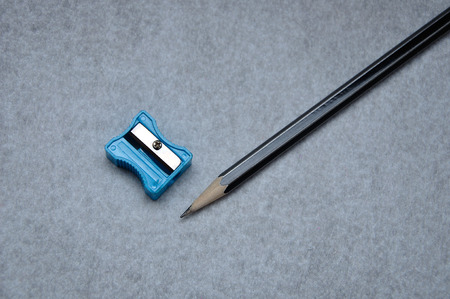 Close-up of pencils and sharpener.