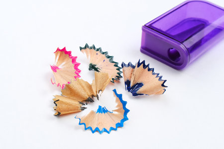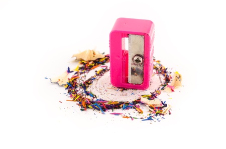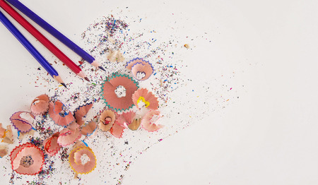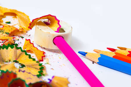 Rubbish from turning colored pencils on a white background