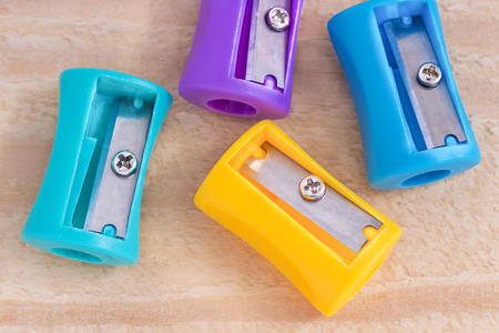 colorful Sharpeners on wooden table background